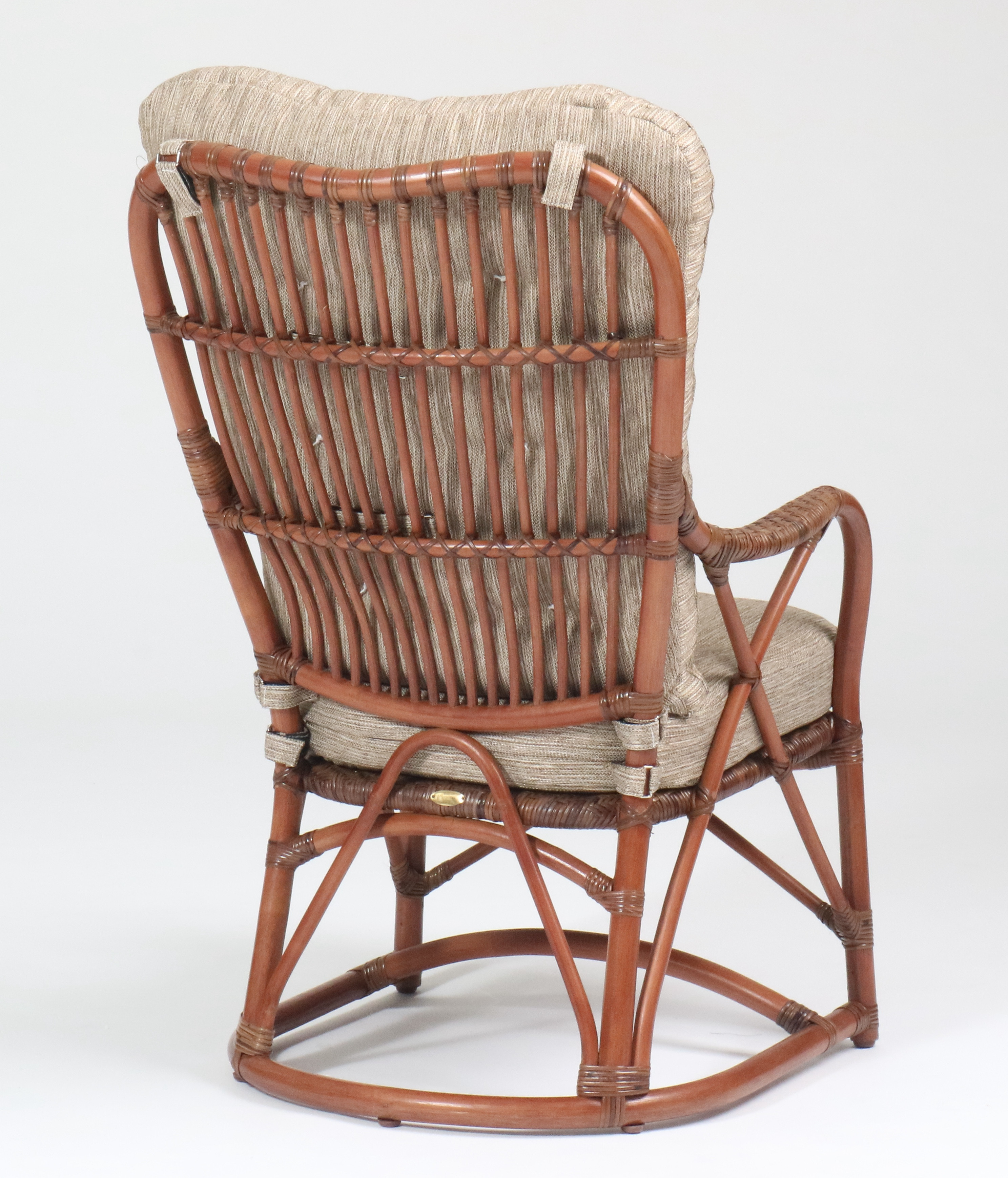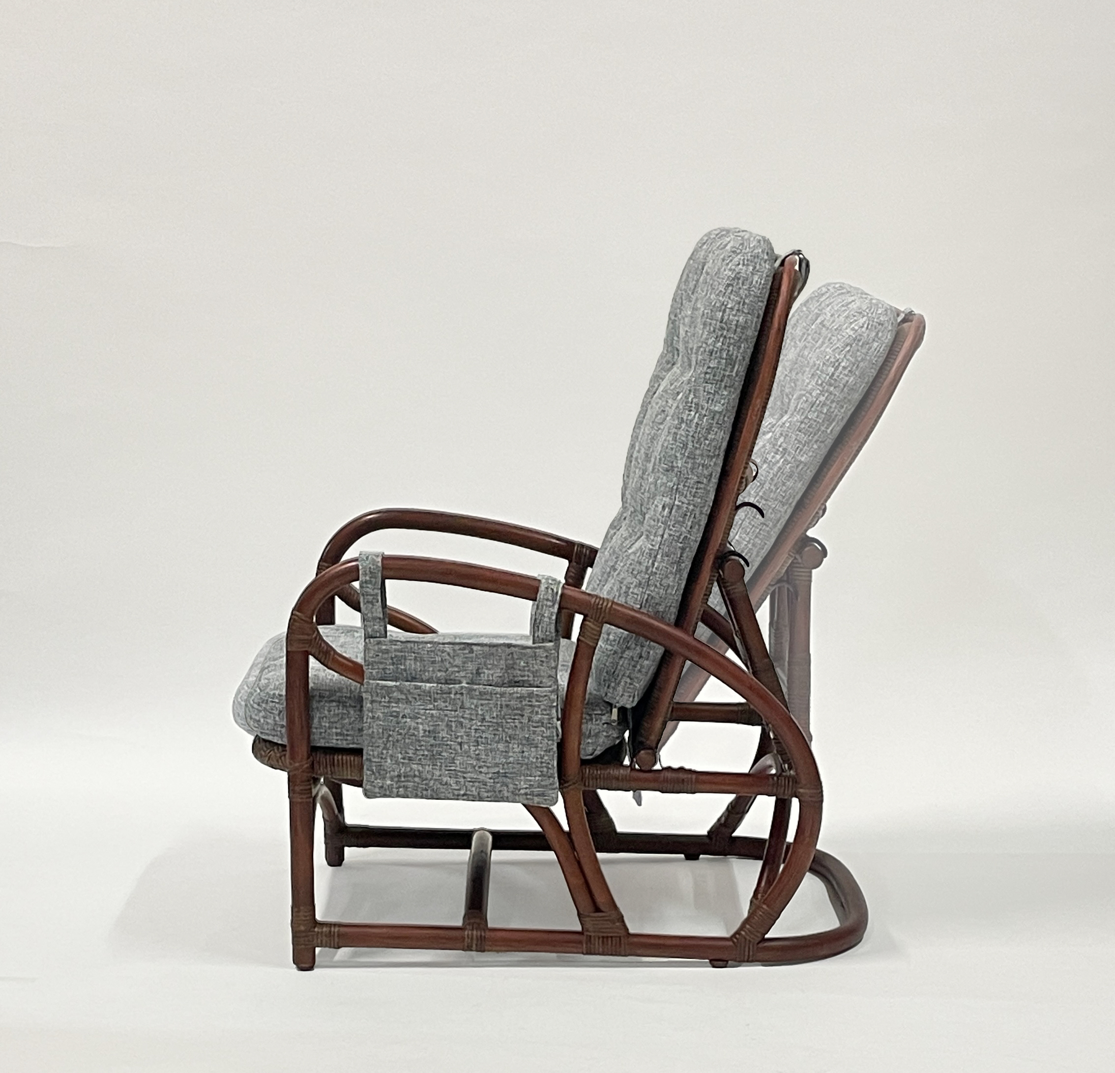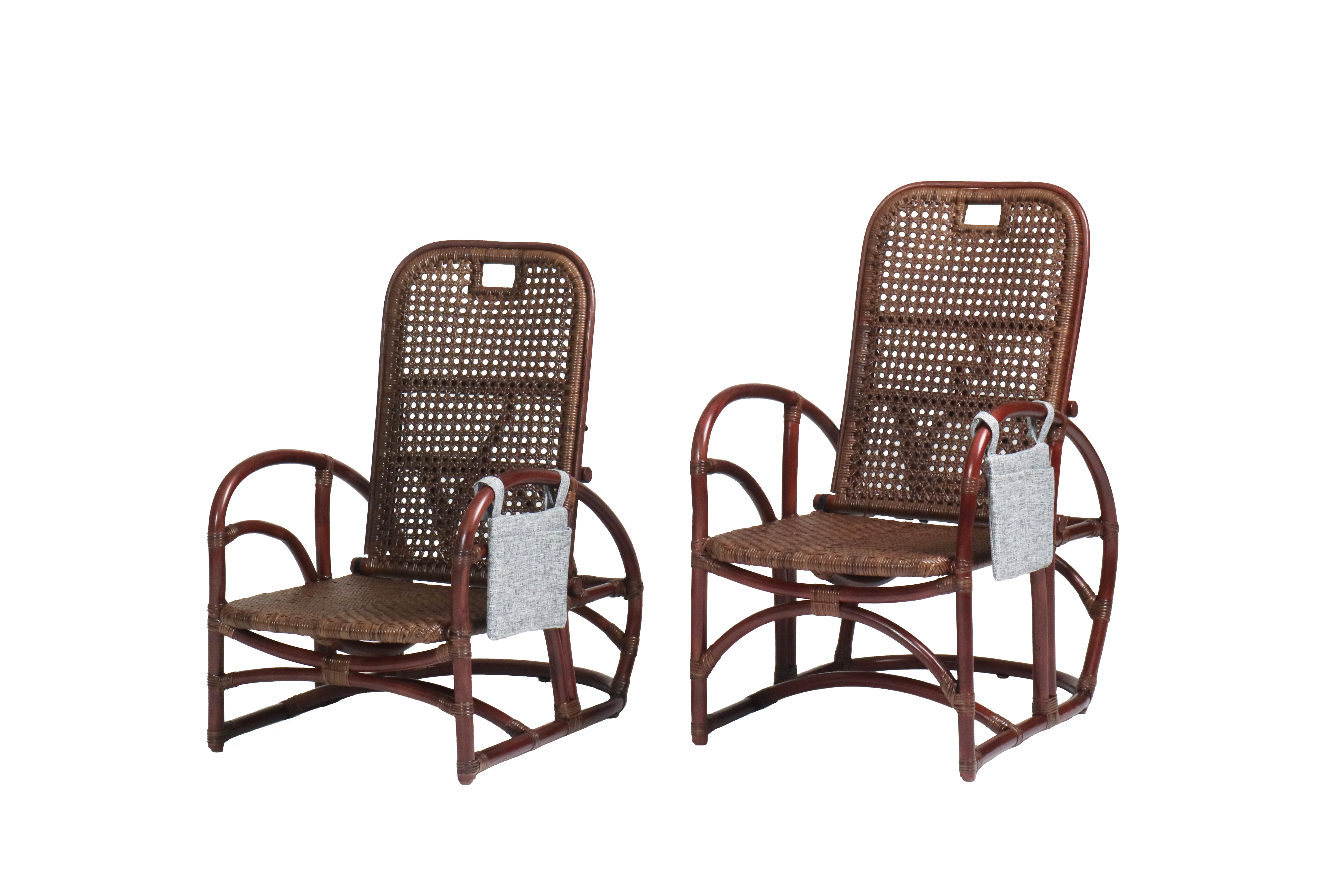 ダスクリクライニングローチェア ダスクリクライニングハイチェア 背は皮籐のカゴメ編み座は網代編みで