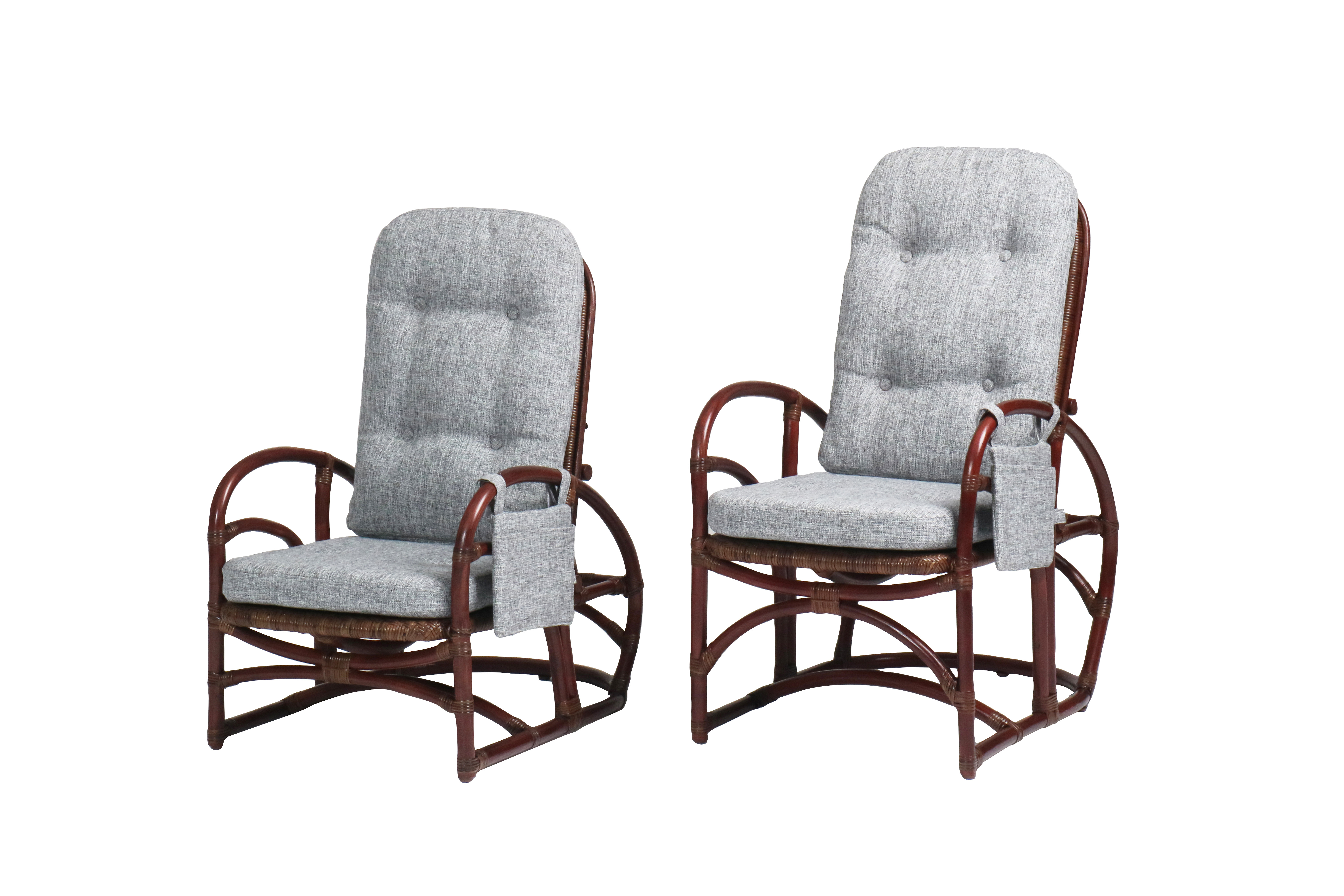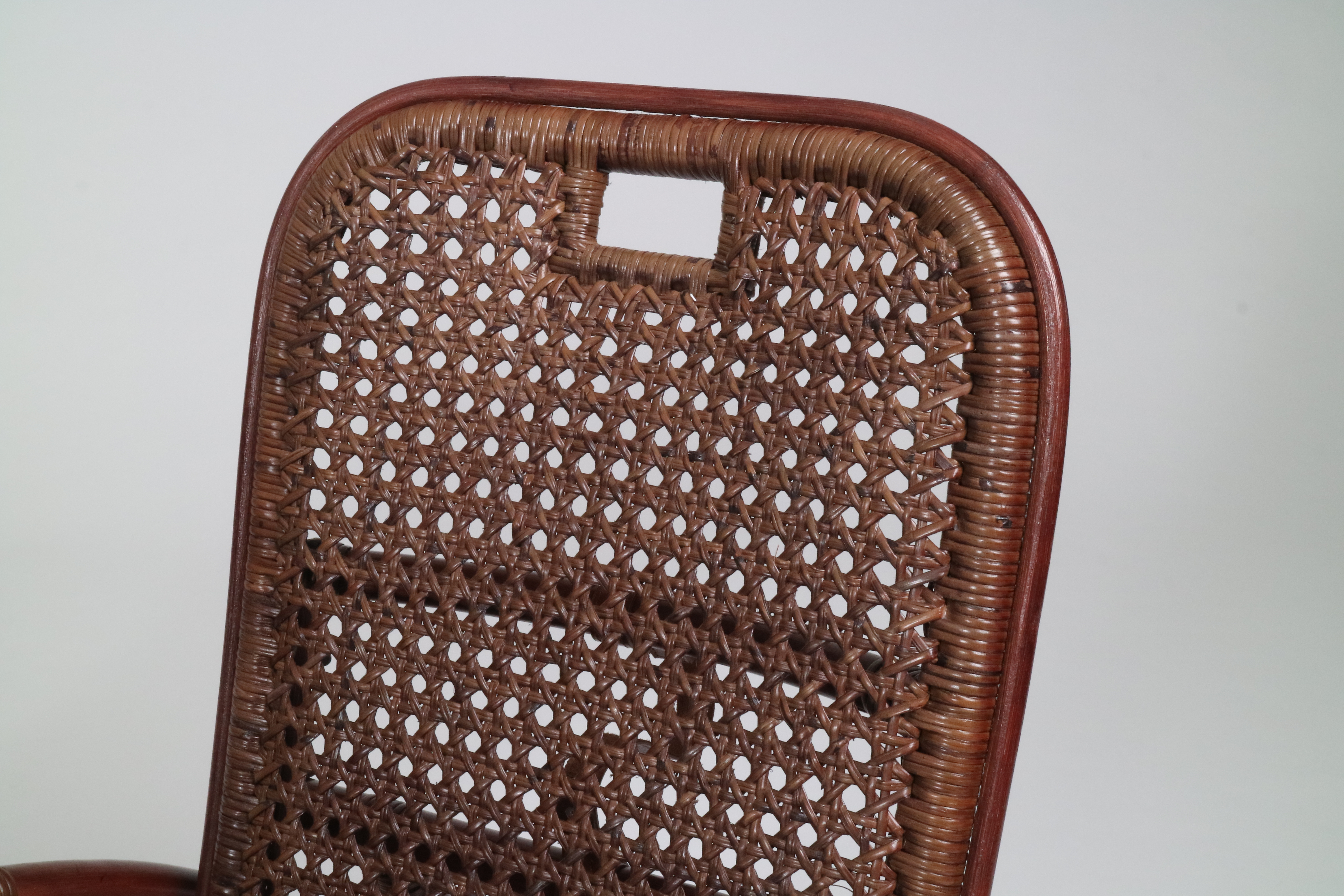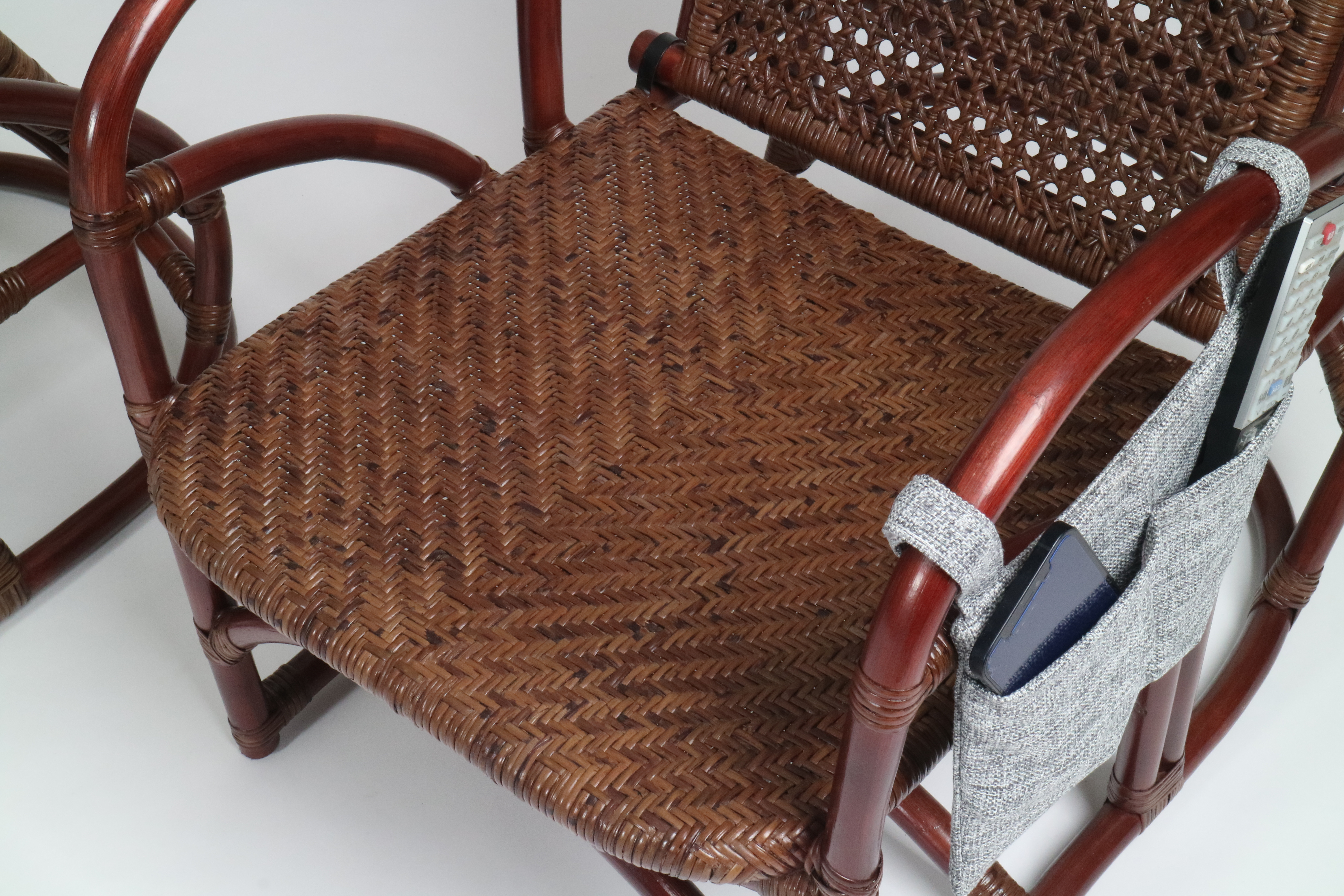 ダスクリクライニングローチェア ダスクリクライニングハイチェア 背は皮籐のカゴメ編み座は網代編みで