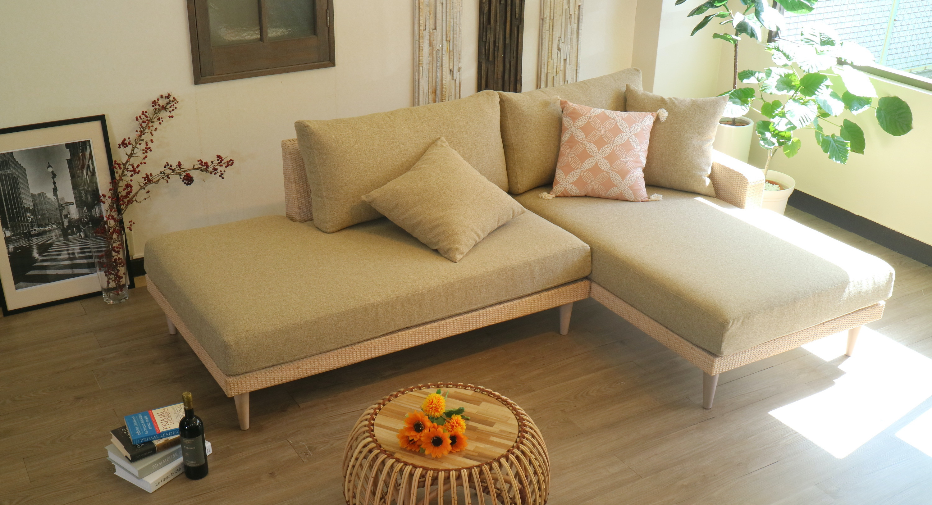 W51・D75〜90・H76・SH31 W51・D75〜90・H76・SH42 クッションを外して涼やかに座って