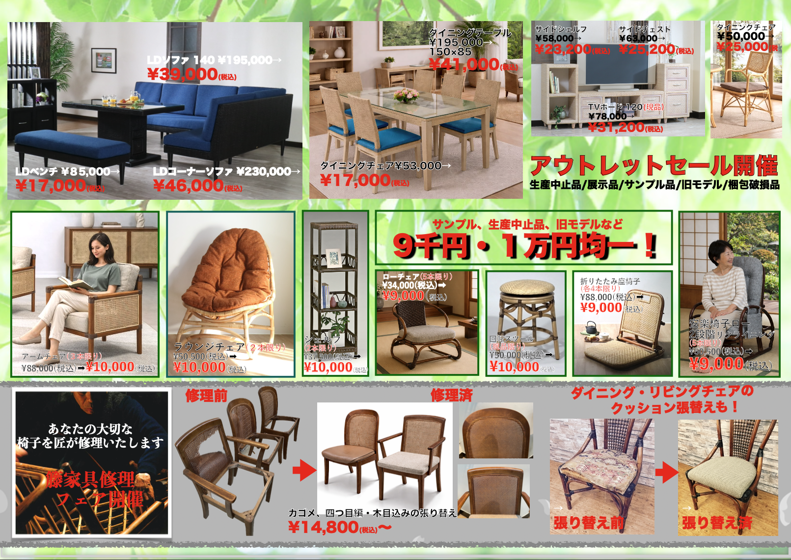 籐家具の修理・塗り直し・抗ウィルス、抗菌塗装